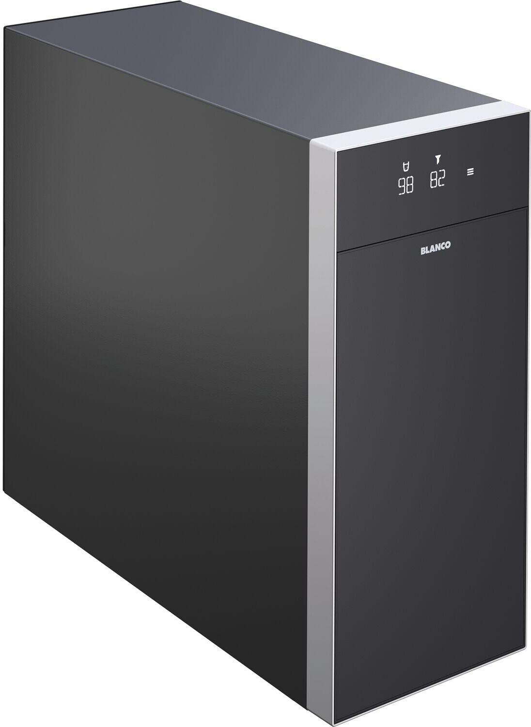 - Kompakte und platzsparende Wasseraufbereitungsbox in minimalistischem Design in Dunkelgrau passend zu den BLANCO Organisationselementen im Unterschrank