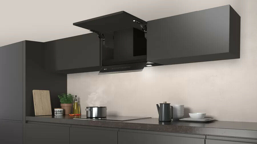 Unsere unsichtbar integrierte Designhaube - Neff D65XAM2S0 - perfekte Integration mit extra Stauraum für praktische Utensilien, zusätzlich zu Gewürzen und Kräutern.