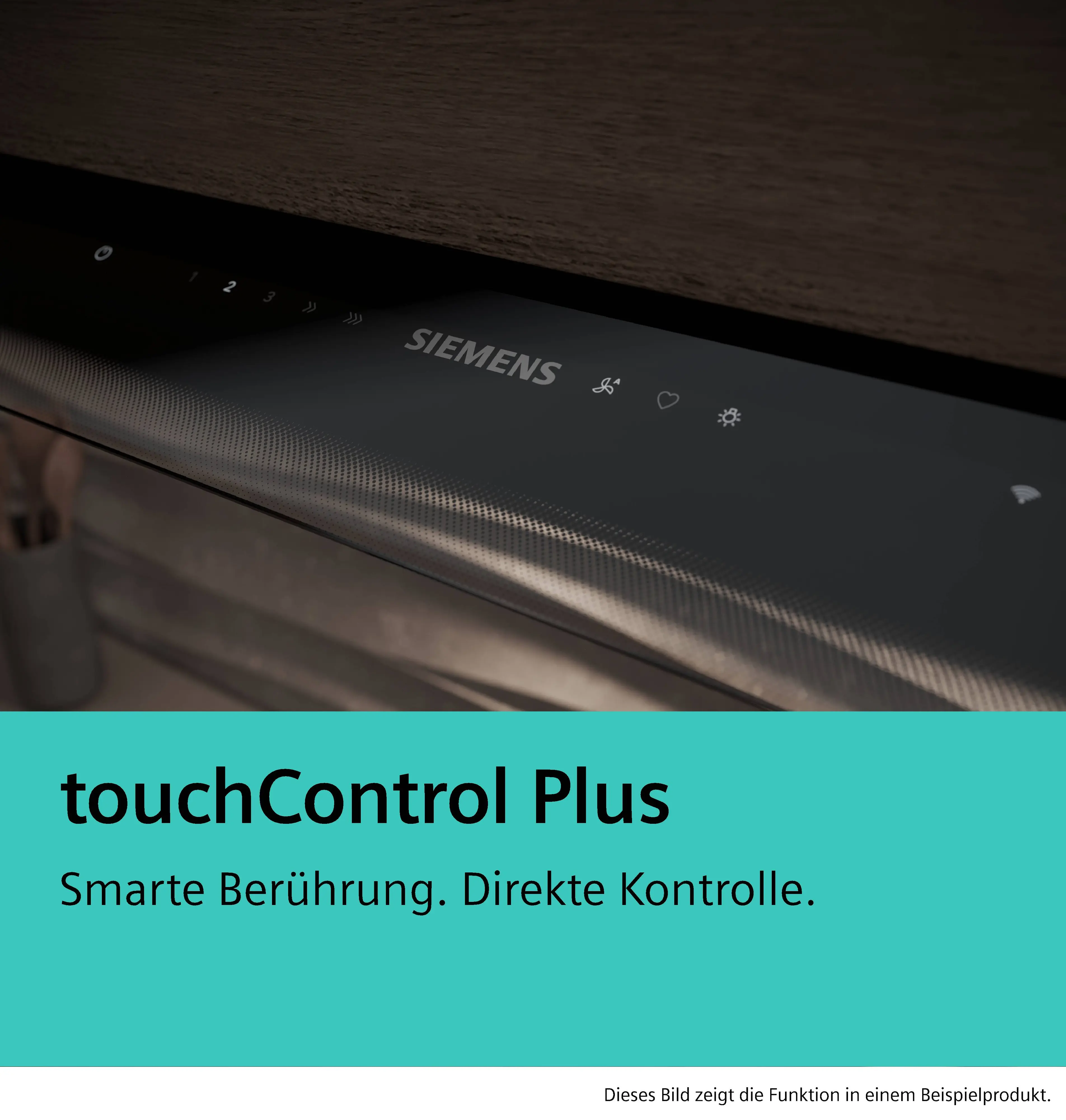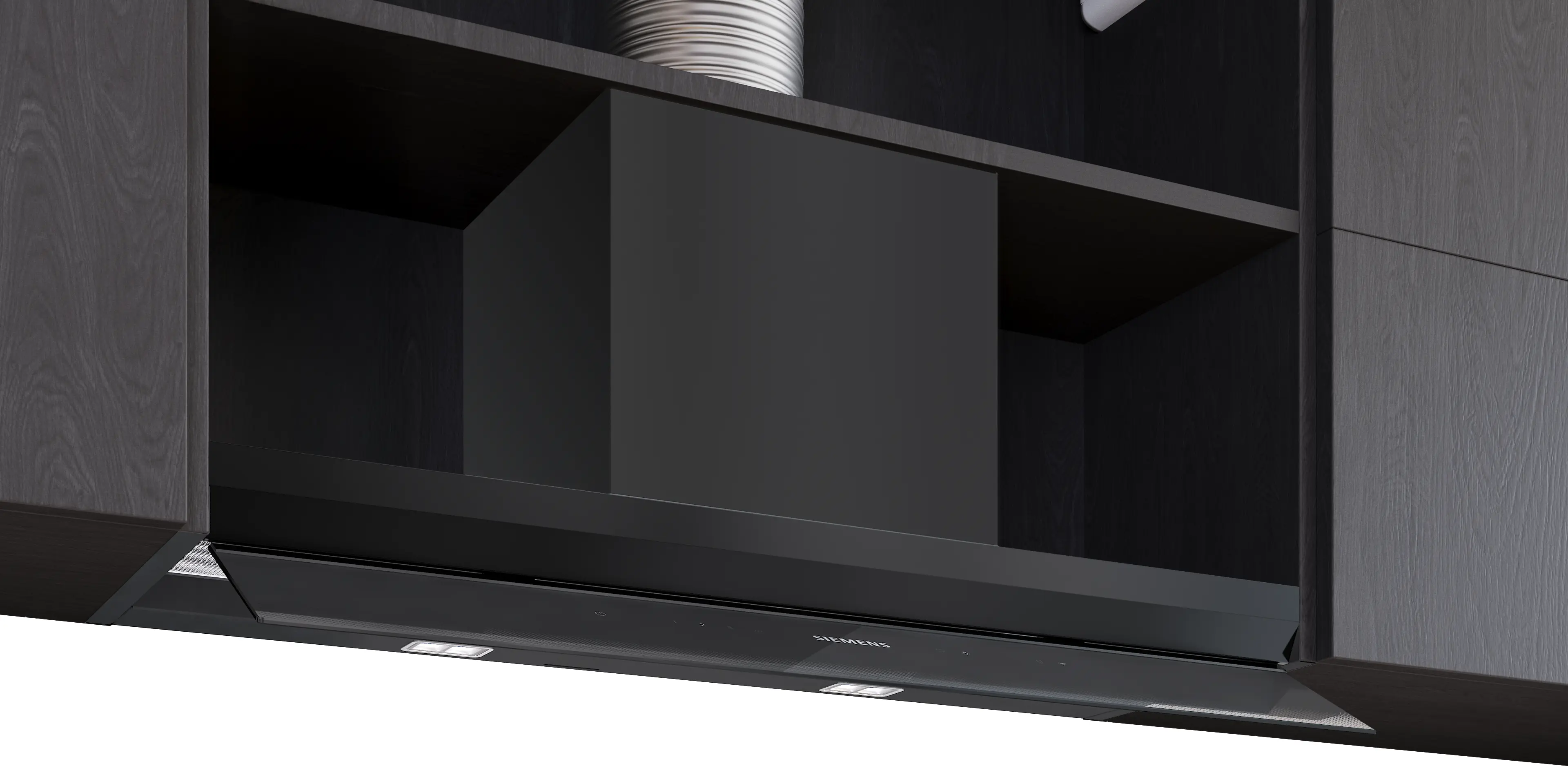 Der elegante Glasschirm der integrierten Designhaube von Siemens lässt sich bei Bedarf nach vorne ausklappen und ist im Ruhezustand fast unsichtbar. Ziehst du den Schirm hervor, werden Haube und Licht automatisch aktiviert. Die intuitive Bedienung ist nahtlos in die Glasoberfläche integriert. Beim Kochen schützt der Schirm die Oberfläche deines Oberschranks vor aufsteigendem Dampf und Fett – und verbindet so stilvoll Schutz mit verbesserter Dunsterfassung.