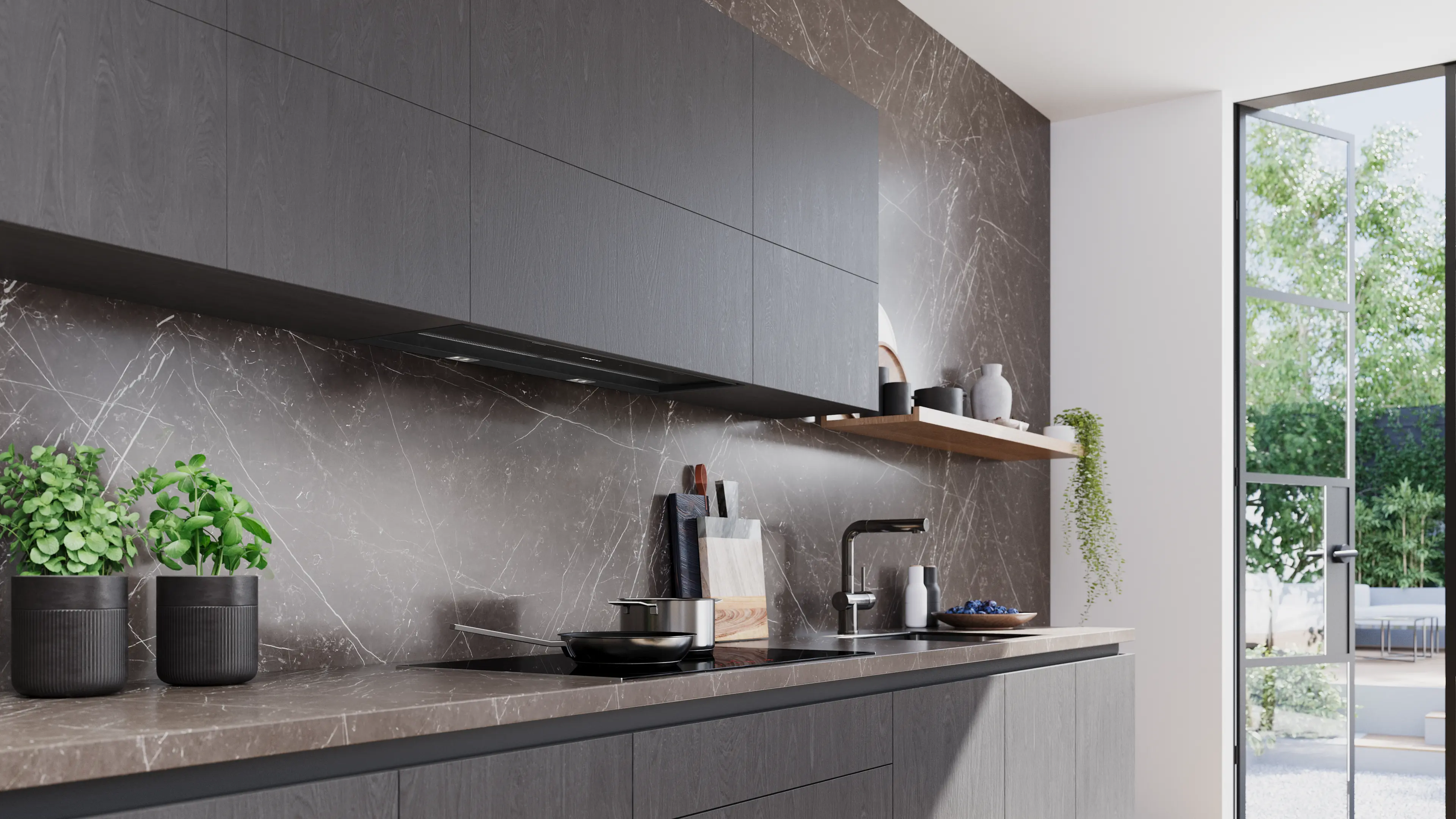 Nie genug Stauraum in deinen Küchenschränken? Mit ihrem kompakten T-förmigen Design sorgt die integrierte Desinghaube von Siemens nicht nur für frische Luft, sondern schafft auch zusätzlichen Raum. Dank der stabilen Konstruktion kannst du nun bis zu 10 kg auf jeder Seite der Haube lagern. Egal ob Gewürze, Kochbücher oder Utensilien – alles, was du benötigst, ist genau da, wo du es willst: griffbereit und clever verstaut. Durchdachtes Design, das mehr aus deinem Raum macht.