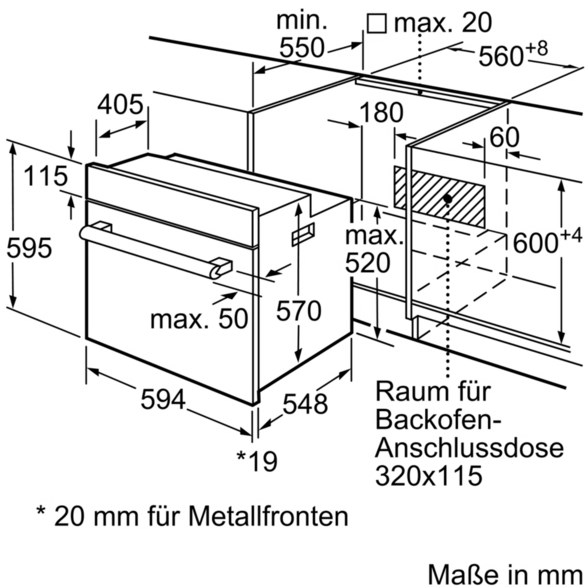- Nischenmaße (HxBxT): 604 mm x 560 mm x 550 mm