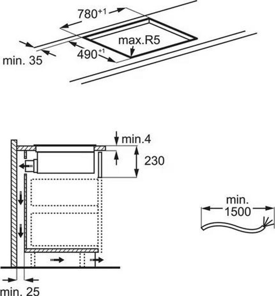 • 80cm Induktions-Kochfeld mit mit integriertem Dunstabzug und BridgeFunktion
