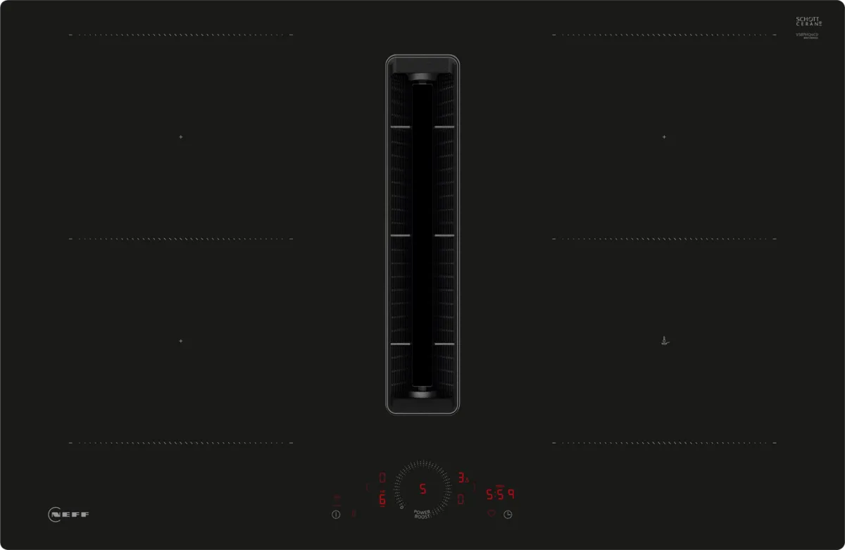 Dieses Induktionskochfeld mit integriertem Kochfeldabzug vereint 2 Geräte in einem und sorgt so für freie Sicht beim Kochen.