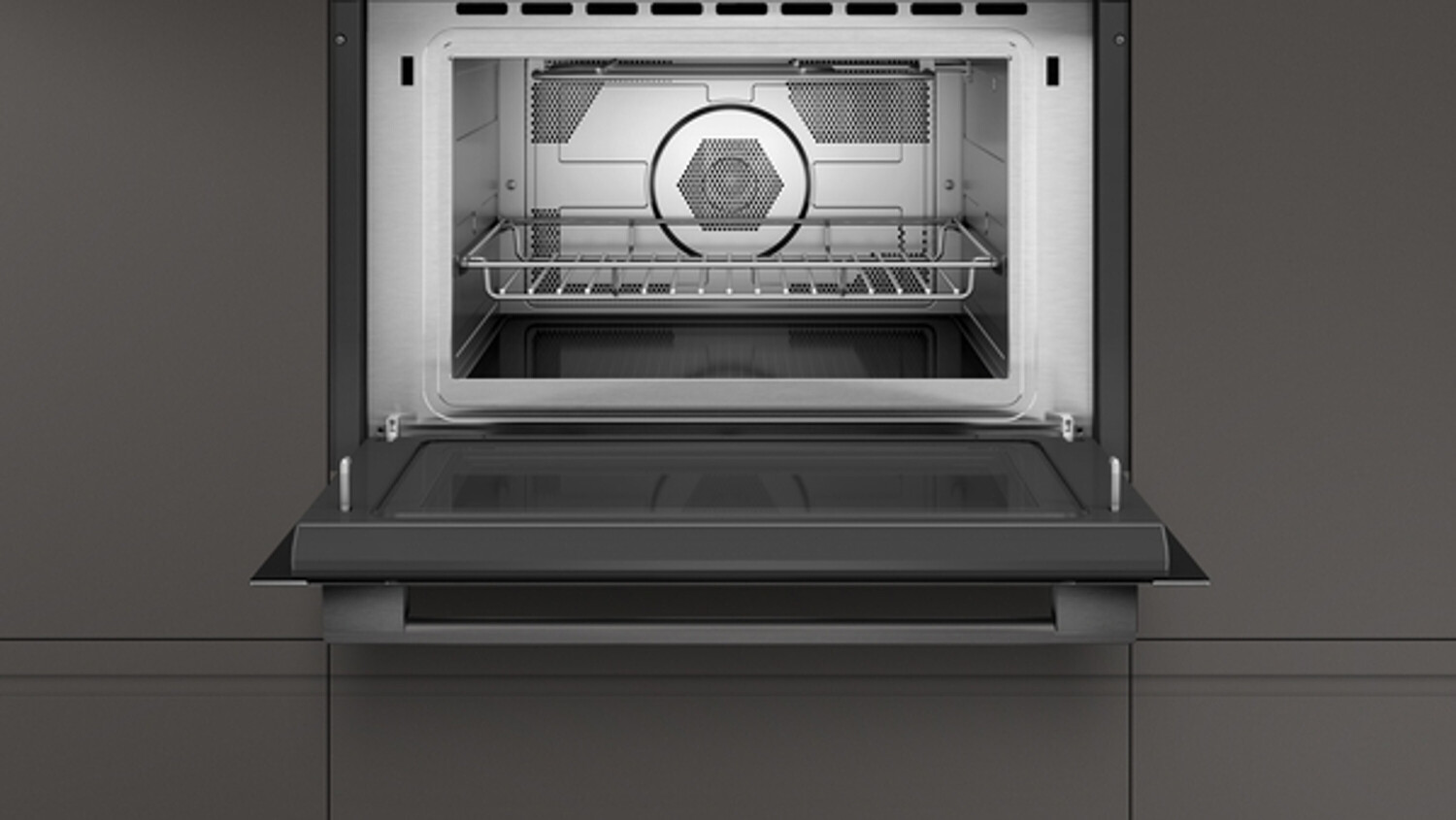 Ein richtiger Küchenpartner auf 45 cm: Einbau-Mikrowelle zum Auftauen, Aufwärmen oder Zubereiten von Gerichten.