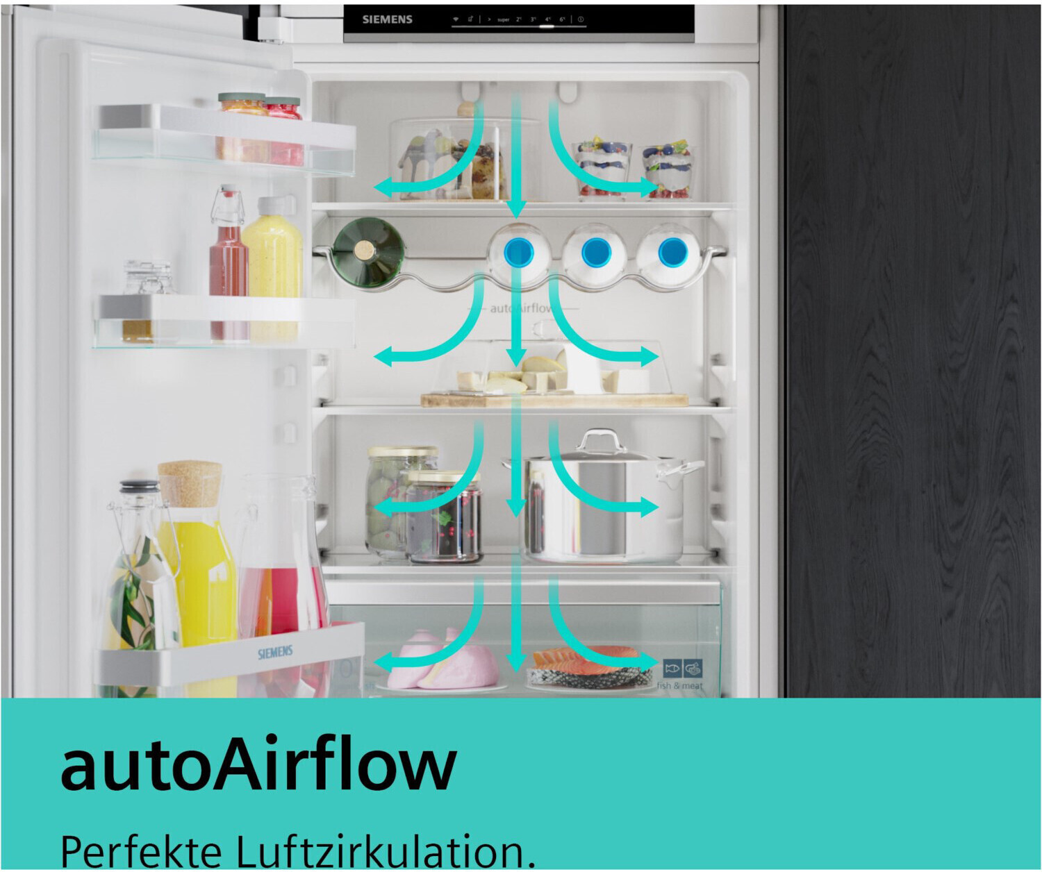 Einbaukühlschrank mit hellem LED-Licht, hyperFresh- und autoAirflow-Funktion für optimale Aufbewahrungsbedingungen.