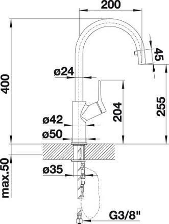 Hahnlochbohrung mit Ø 35mm erforderlich