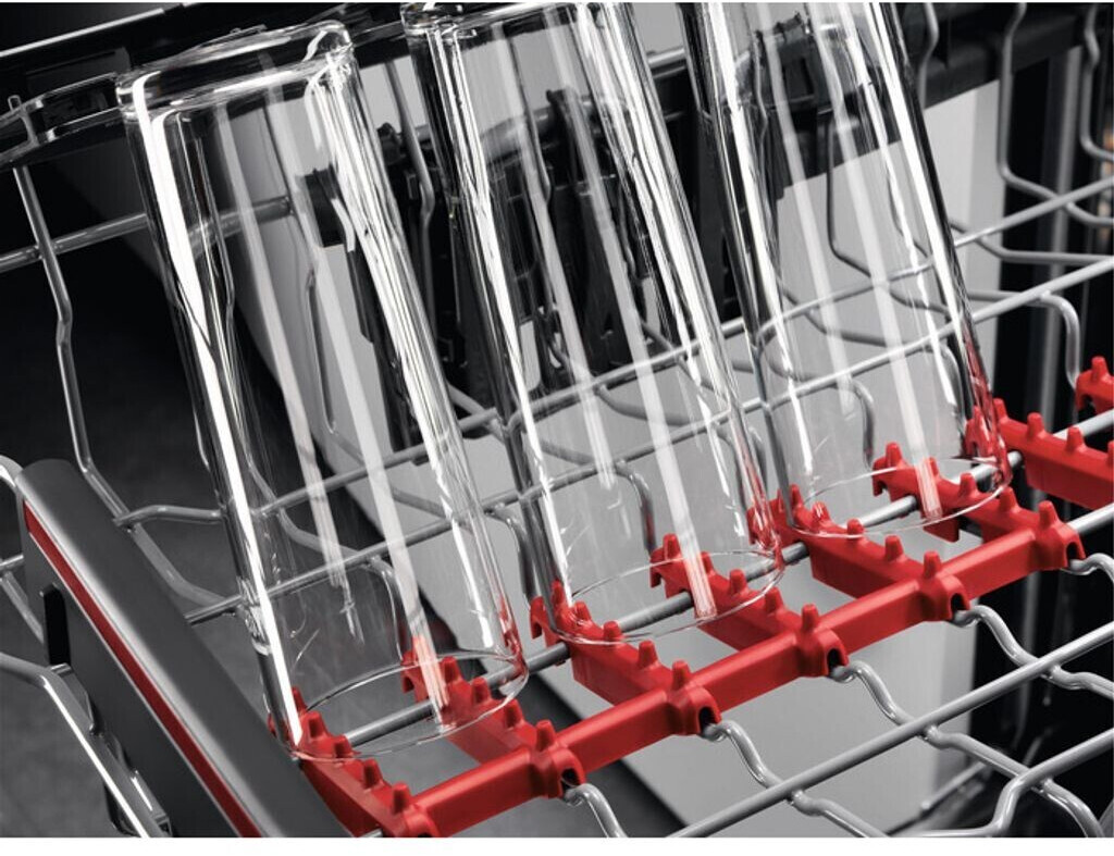 Die Glasstiele können einfach in die patentierten SoftGrip-Klammern eingeklipst werden. Und die im Oberkorb liegenden gummierten SoftSpikes lassen kein Glas verrutschen. Das schützt den Glasrand und macht ein Umkippen deiner Gläser nahezu unmöglich.