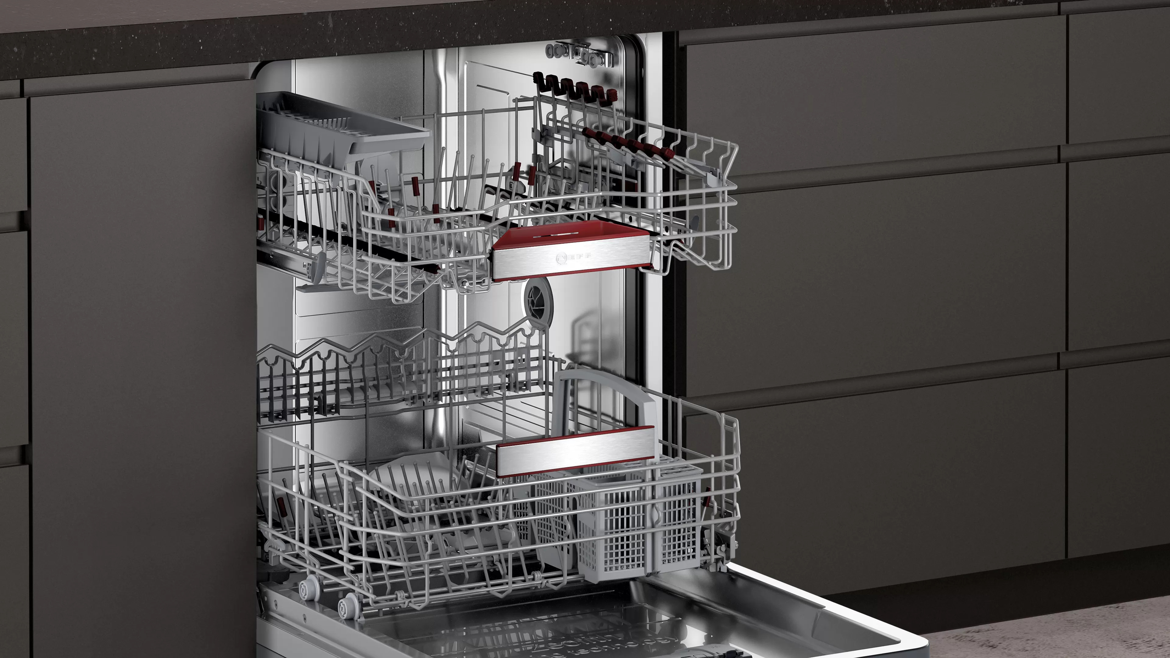 - Flex 3 Korbsystem – nachrüstbar auf der 3. Beladungsebene: flexible Geschirrkörbe für unterschiedlichste Beladungsmöglichkeiten