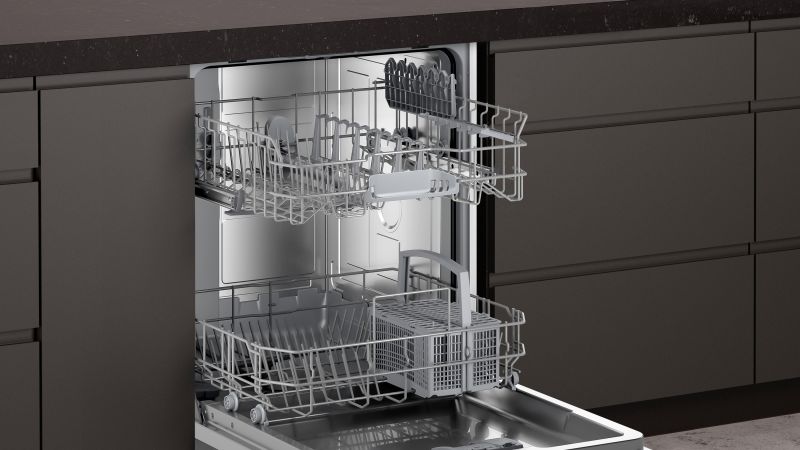 - InfoLight – Solange der rote Punkt auf den Boden vor dem Geschirrspüler projiziert ist, läuft er noch