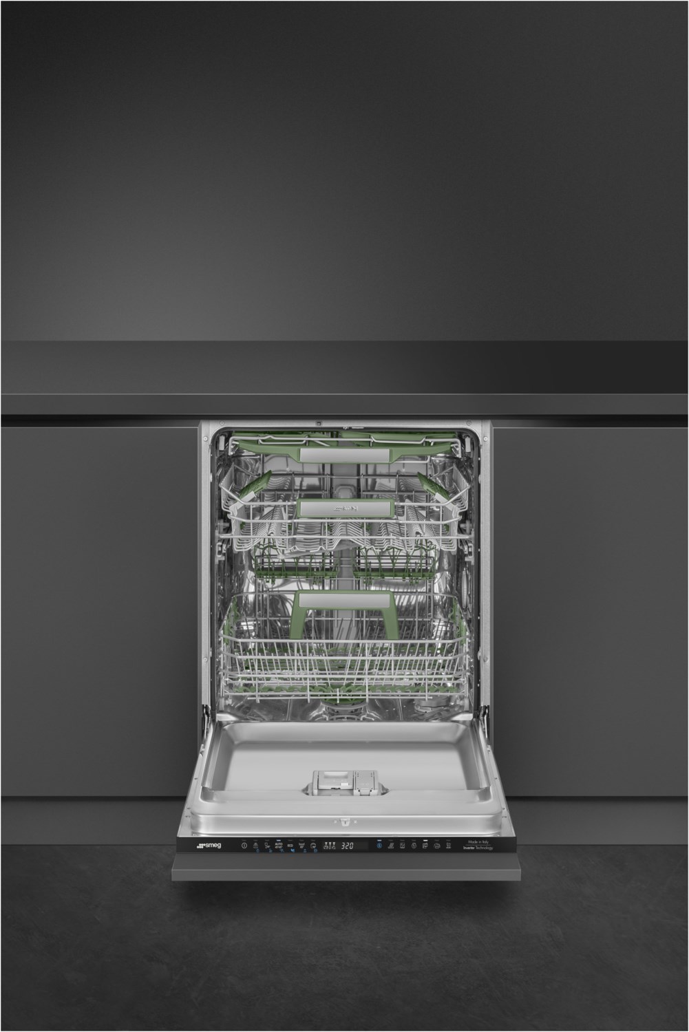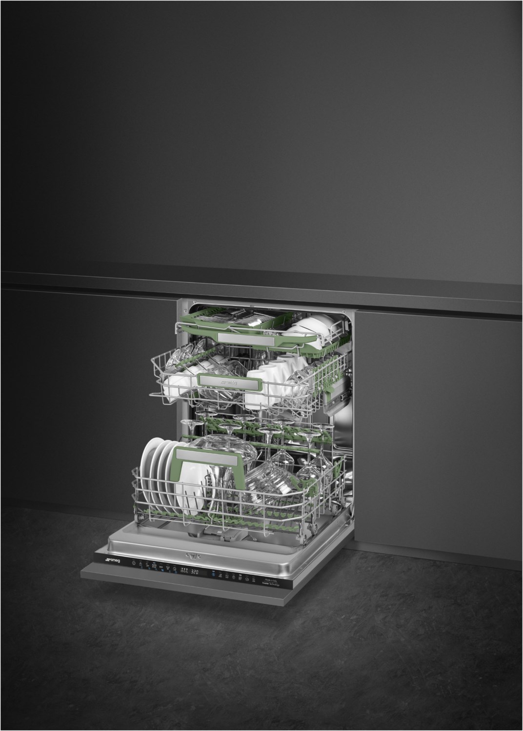 - Patentierte SMEG-Technologie für perfekte Reinigung: Die innovative Bewegung des Sprüharms sorgt für eine vollständige und tiefenwirksame Abdeckung im gesamten Innenraum – für strahlend sauberes Geschirr bis in jede Ecke - Planetarium Waschsystem